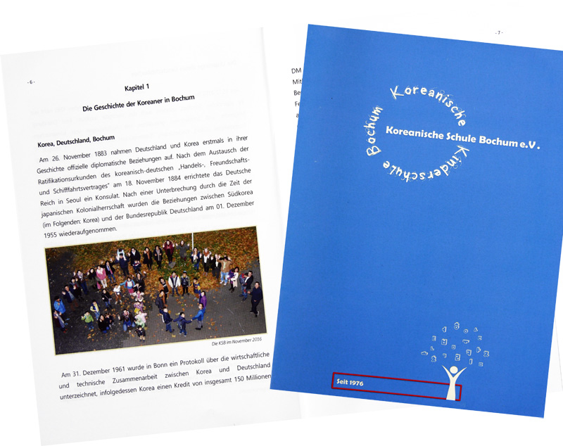 Das Buch über die Geschichte der Koreanische Schule Bochum, das am 16. Februar 2018 in koreanischer Sprache herausgegeben und am 31. Mai 2018 mit einem